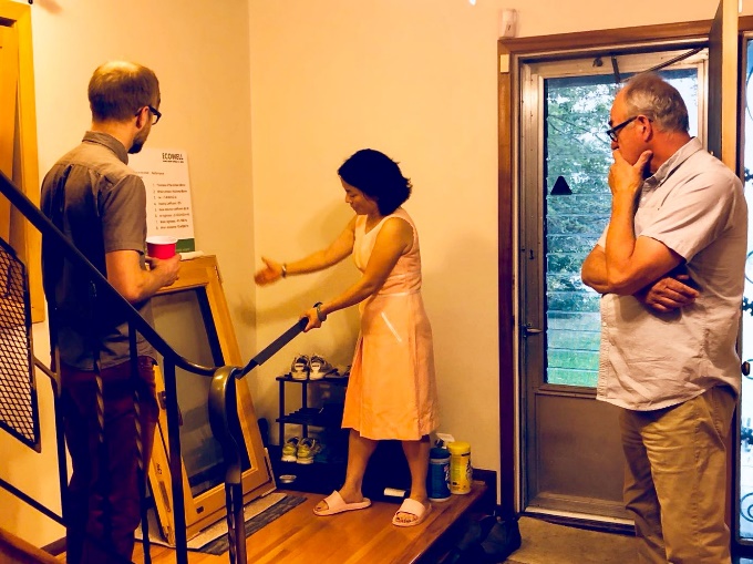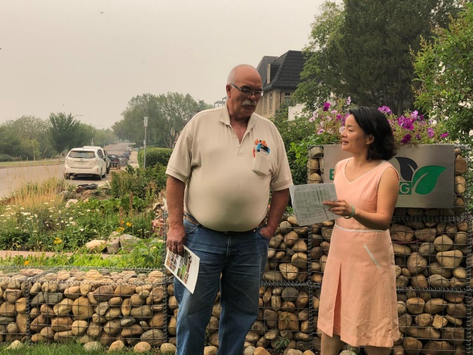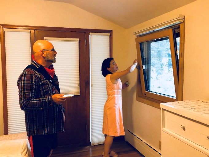 Mr. Robin Adair of The Green Builder, Mr. Michael Nemeth – Passivhaus Consultant of Bright Buildings, Mr. Jason Praski of EXA Energy Consulting and Mr. Peter Comben of JPS excavating Inc. etc visited the events. We had an impressive tour on different kinds of windows, such as Alu-clad Timber window and Aluminium window and PVC window for Passive House Buildings. At same moment, we look around the gabion free standing wall with vine and bench on the front yard.