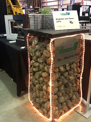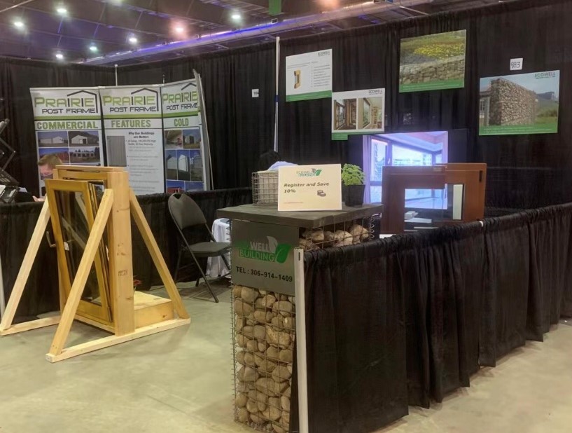 Ecowell Building materials exhibited gabion and wood windows at 410 22nd St. E, Regina, SK.